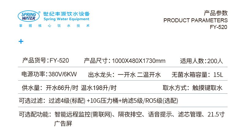 上一個產(chǎn)品:校園飲水機 校園溫熱飲水機 200人用飲水機 型號:FY-F520步進式
