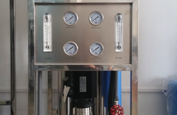 1)反滲透主機(jī)設(shè)有膜前壓力表和膜后壓力表,對(duì)膜的工作壓力進(jìn)行檢測(cè),并設(shè)有系統(tǒng)路徑運(yùn)行顯示,淡水流量計(jì)和濃水流量計(jì)檢測(cè)濃、淡水流量。