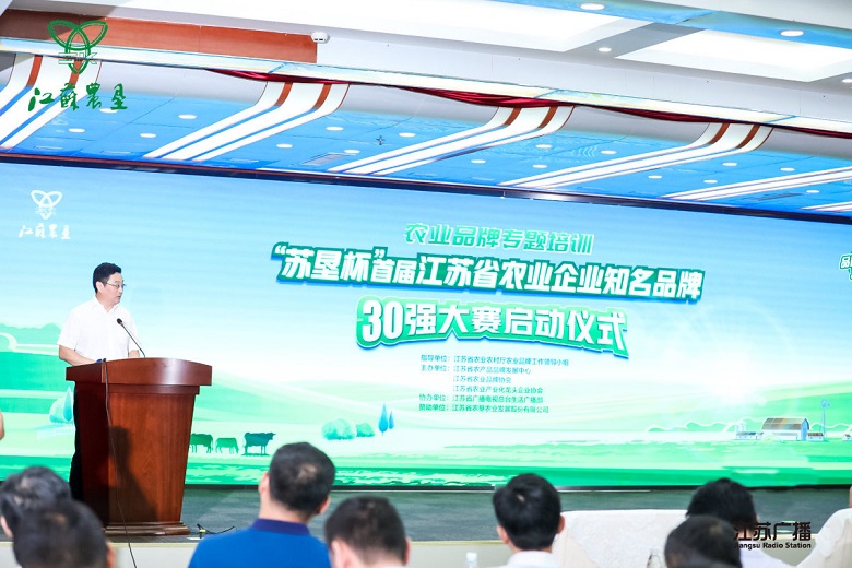 8月25日上午,“蘇墾杯”首屆江蘇省農業企業知名品牌30強大賽啟動儀式在江蘇南京召開,大賽由省農產品品牌發展中心、省農業品牌協會、省農業產業化龍頭企業協會等三家單位主辦,省農業農村廳市場與信息化處指導,蘇墾農發獨家冠名。省農業農村廳廳長楊時云,集團公司黨委書記、董事長魏紅軍,集團公司黨委委員、副總經理、蘇墾農發黨委書記王立新,省農業農村廳二級巡視員黃非,江蘇廣電總臺副臺長李聲,蘇墾農發黨委委員、副總裁江玉明以及各設區市農業農村局有關負責人、省農業品牌協會、省農業產業化龍頭企業協會有關領導等出席啟動儀式。