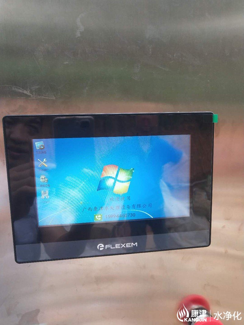 項目名稱:來賓市武宣縣河水凈化工程 設備名稱:10噸河水壓力式凈水設備 工藝流程:河水-石英砂過濾器-凈水箱-二氧化氯消毒-加壓泵-高位水塔...