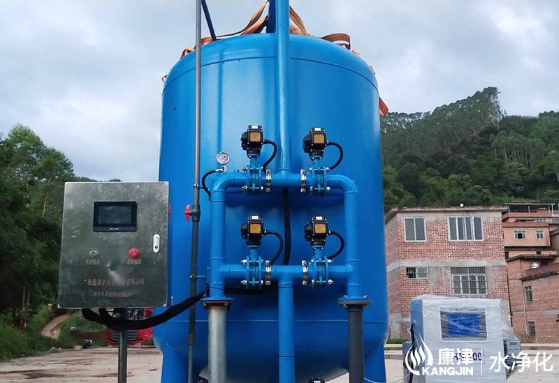 壓力式凈水設(shè)備是利用一種或幾種過(guò)濾介質(zhì),在一定的壓力下把濁度較高的水通過(guò)一定厚度的粒狀或非粒材料,從而有效的除去懸浮雜質(zhì)使水澄清的過(guò)程,濾料是無(wú)煙煤、石英砂、等材料為床層,各介質(zhì)的相對(duì)密度和粒徑應(yīng)有一定差別,由無(wú)煙煤與石英砂組成的雙層濾料,所用的無(wú)煙煤相對(duì)密度為1.4—1.6,粒徑為0.8—1.8mm,石英砂相對(duì)密度為2.6—2.65,粒徑為0.5—1.2mm床層的頂層由最輕和最粗品級(jí)的材料組成。其原理為按深度過(guò)濾,水中較大的顆粒在頂層被去除,較小的顆粒在過(guò)濾器介質(zhì)的較深處被去除。