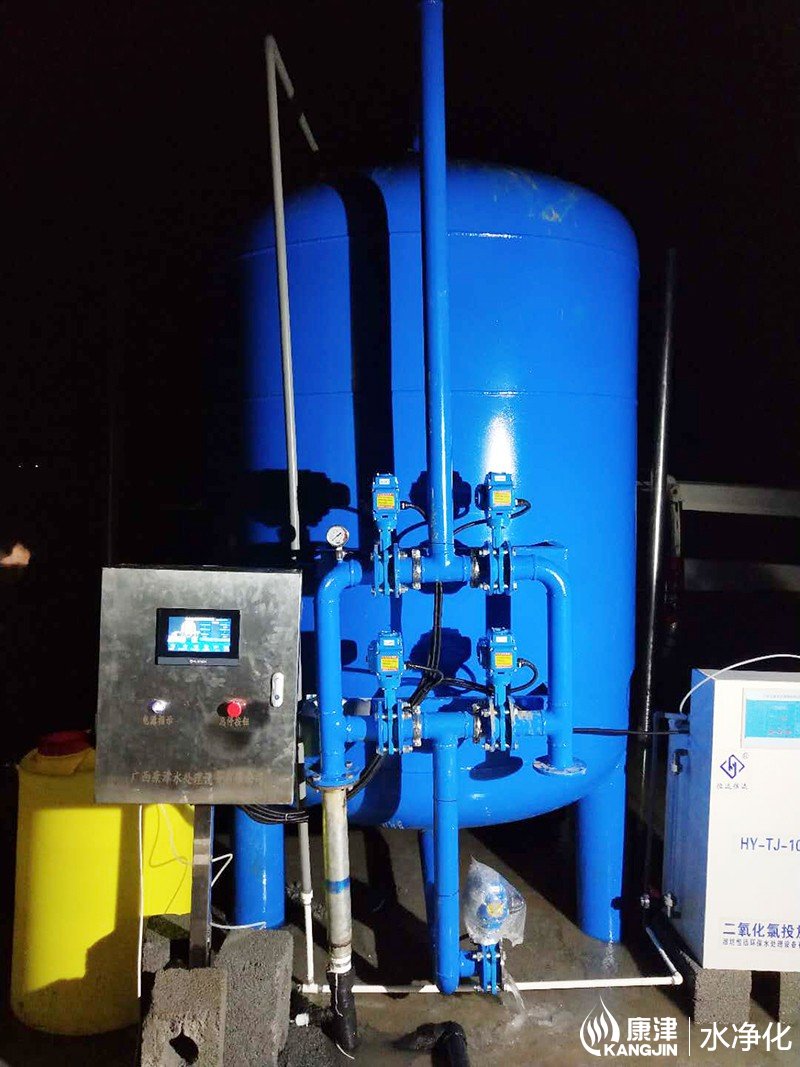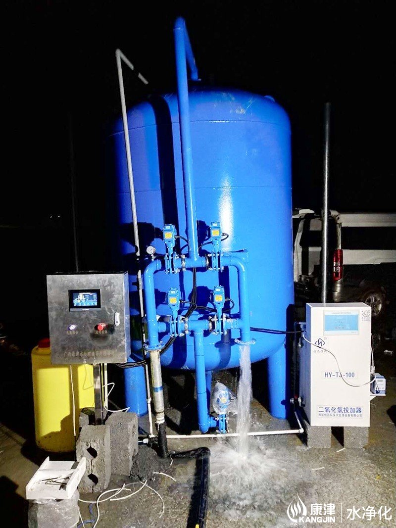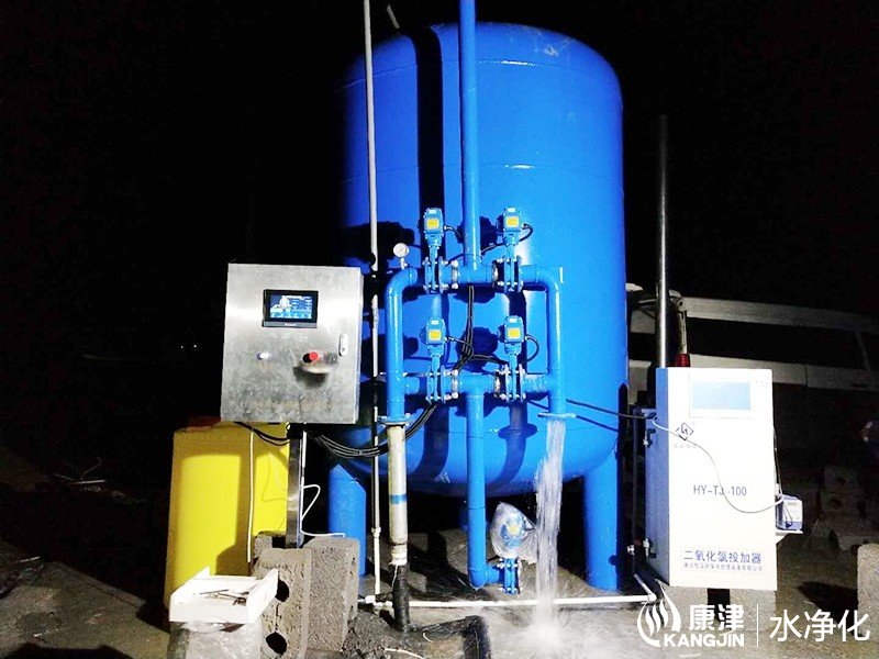 工藝流程:井水-絮凝加藥-石英砂過濾器-二氧化氯消毒