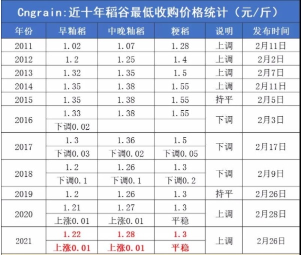 1、2021年稻谷最低收購價公布