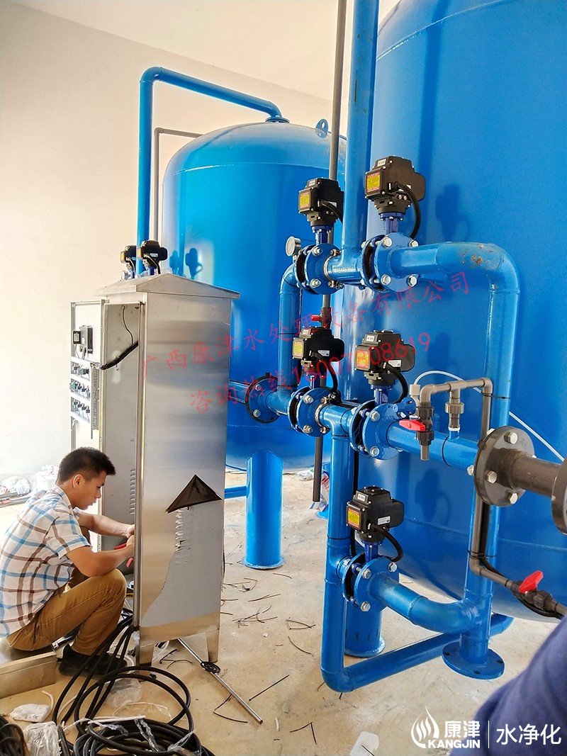 項目名稱:貴港公王村河水凈化工程 設備名稱:30噸壓力式凈水設備 工藝流程:河水-石英砂過濾器(二級過濾)-二氧化氯消毒...