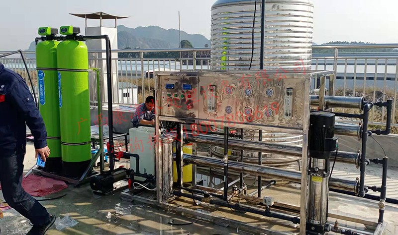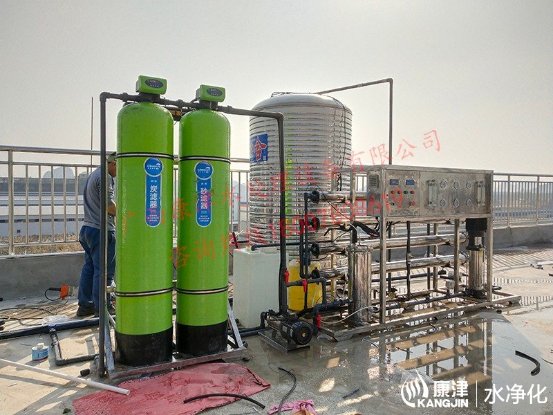 工藝流程:原水箱-原水泵-石英砂過(guò)濾器-活性炭過(guò)濾器-精密過(guò)濾器-反滲透設(shè)備-凈水箱