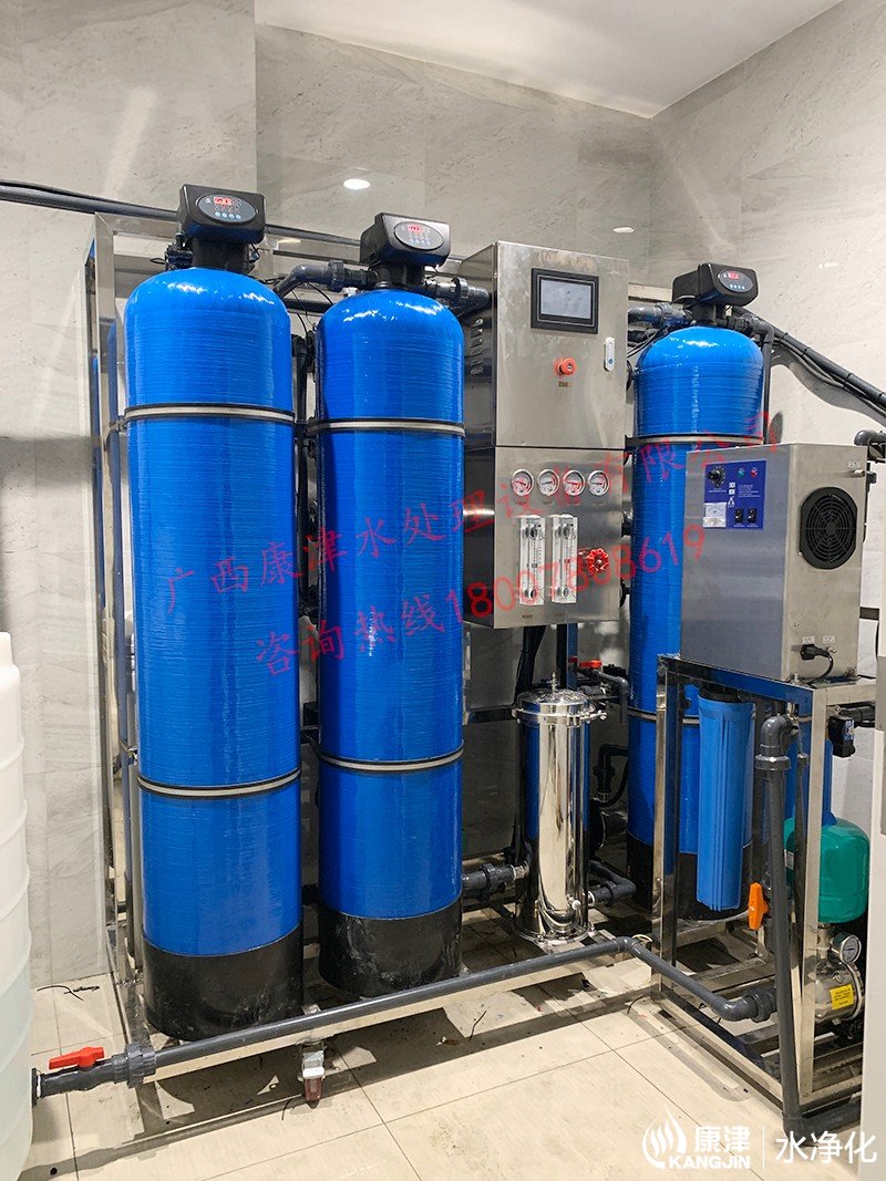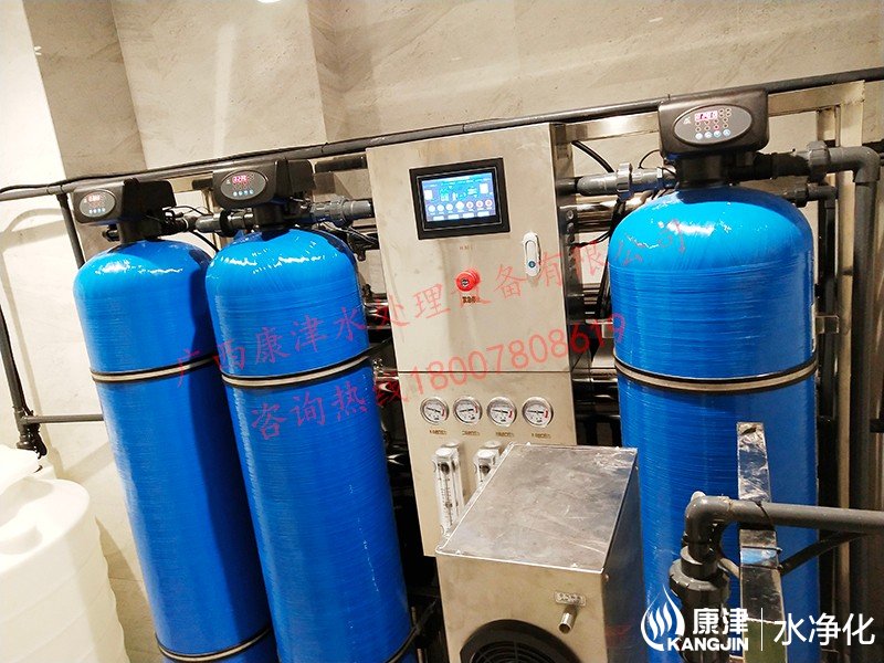 工藝流程:原水箱-原水泵-石英砂過濾器-活性炭過濾器-樹脂過濾器-精密過濾器-反滲透設備-軟水鹽-凈水箱-變頻供水回水殺菌系統(tǒng)-用水點