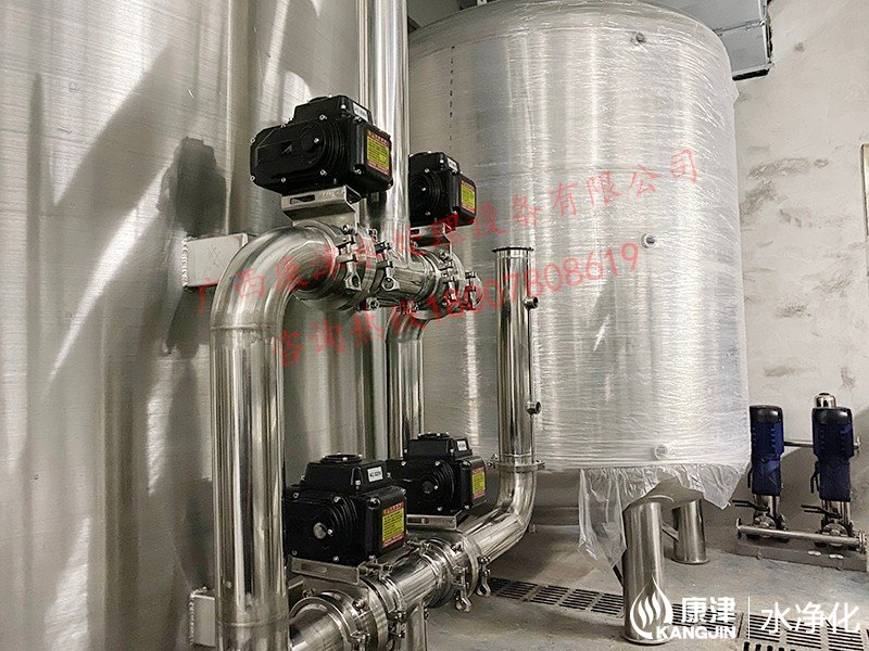 工藝流程:井水-原水箱-原水泵-石英砂過濾器-活性炭過濾器-阻垢裝置-保安過濾器-雙級(jí)反滲透設(shè)備-無菌水箱