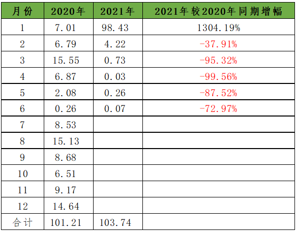 表1 俄羅斯大豆出口量2020年與2021年對比情況(單位:萬噸)