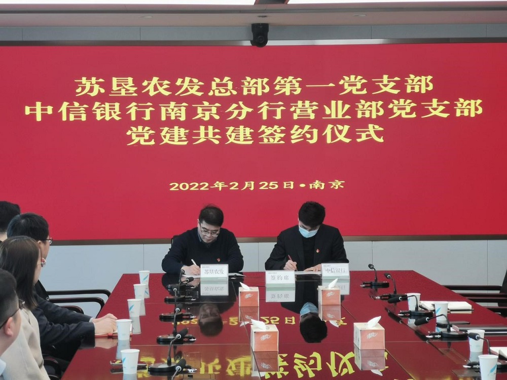2月25日,蘇墾農(nóng)發(fā)總部第一黨支部與中信銀行南京分行營(yíng)業(yè)部黨支部舉行黨建共建簽約儀式。簽約前,蘇墾農(nóng)發(fā)總部第一黨支部書記劉剛和中信銀行南京分行營(yíng)業(yè)部黨支部書記張磊各自介紹了支部基本情況,并就黨員隊(duì)伍建設(shè)、黨建工作開(kāi)展以及黨建業(yè)務(wù)融合促進(jìn)等方面內(nèi)容作交流。隨后,雙方代表簽訂《黨建共建協(xié)議書》,并互贈(zèng)黨建書籍。