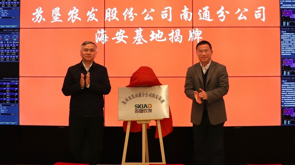 會上,還舉行了蘇墾農發南通分公司海安基地揭牌儀式,蘇墾農發南通分公司與海安市雅周現代農業園簽署了合作協議。