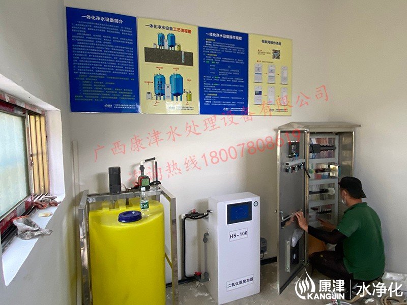 工藝流程:河水-絮凝加藥-沉淀過(guò)濾器-石英砂過(guò)濾器-二氧化氯消毒