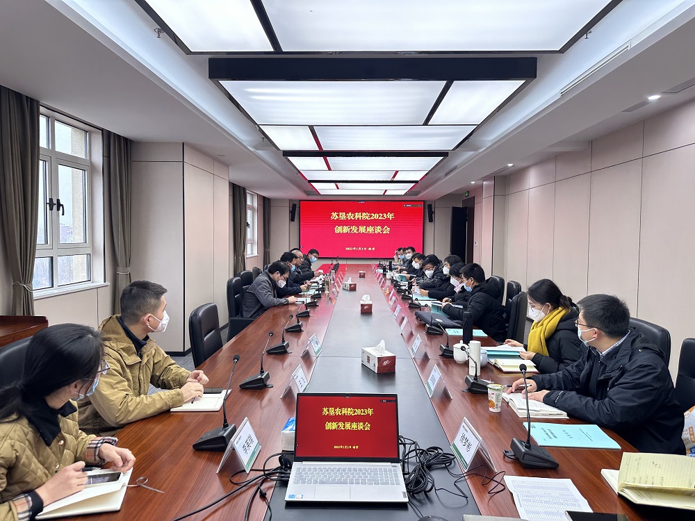 2023年1月2日下午,蘇墾農科院2023年創新發展座談會在農科院總部召開。蘇墾農科院領導班子成員,總部及下屬單位副職以上成員參加本次座談會,會議由農科院院長王俊仁主持。
