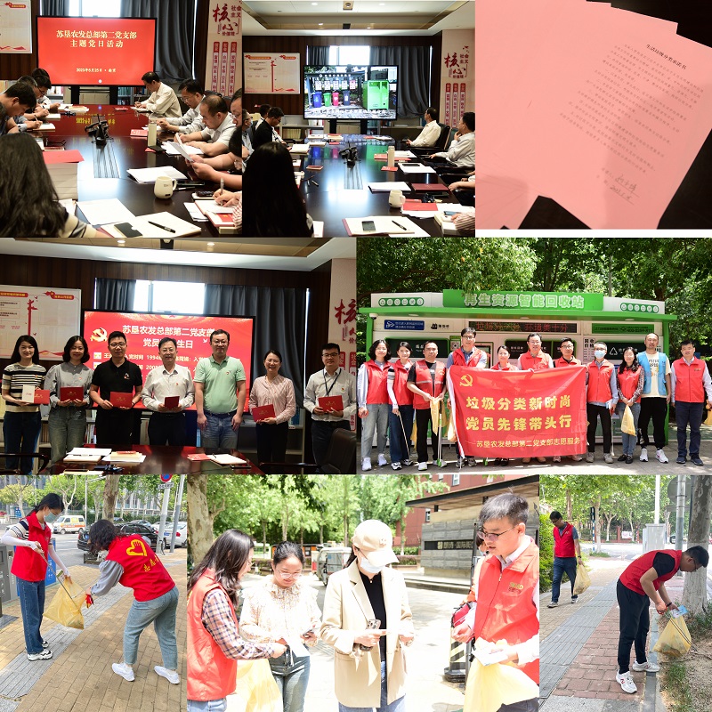 學習貫徹習近平新時代中國特色社會主義思想主題教育開展以來,蘇墾農發總部第二黨支部自覺對標主題教育總要求和目標任務,以學深悟透、實干篤行、奮勇爭先的精神,扎實推進主題教育走深走實。5月25日,在“全國城市生活垃圾分類宣傳周”之際,支部組織黨員開展“垃圾分類新時尚黨員先鋒帶頭行”主題黨日活動,引導黨員積極作為,展現黨員當先鋒、做表率的良好風貌。