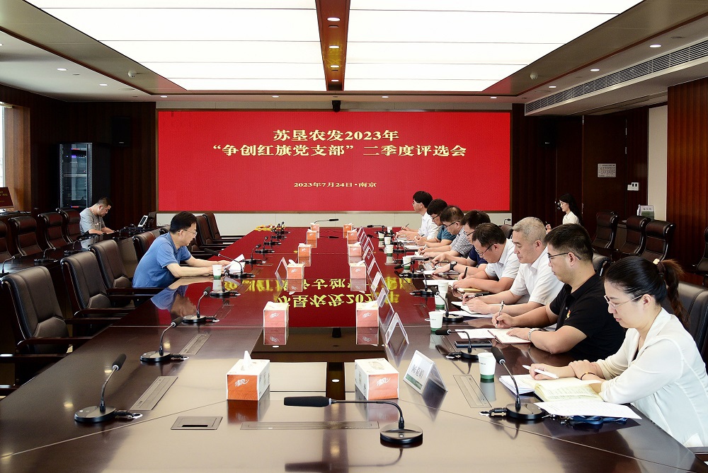 7月24日,蘇墾農發召開2023年“爭創紅旗黨支部”第二季度評選會。公司黨委副書記、工會主席王進強主持會議并講話。