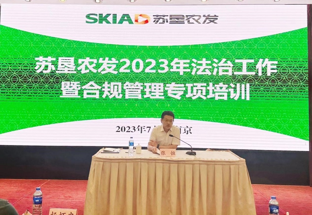 •        為進一步深化推進公司法治建設,提升公司總部及下屬各單位法治及合規管理水平,7月27日至28日,蘇墾農發在南京舉辦法治工作暨合規管理專項培訓,公司黨委委員、副總裁、董事會秘書張恒出席會議并講話。
