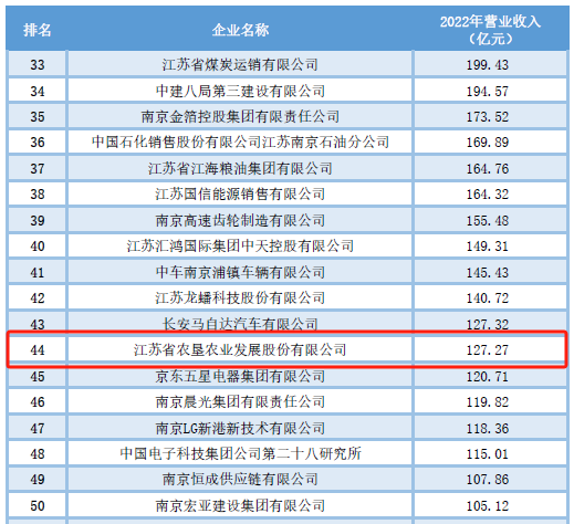 南京市百?gòu)?qiáng)企業(yè)排行榜于2019年首次發(fā)布,從企業(yè)營(yíng)收、增長(zhǎng)率等維度對(duì)區(qū)域內(nèi)企業(yè)進(jìn)行綜合評(píng)價(jià),蘇墾農(nóng)發(fā)2019年位列南京市百?gòu)?qiáng)企業(yè)第65名。今年,蘇墾農(nóng)發(fā)已連續(xù)五年再次入選南京市百?gòu)?qiáng)企業(yè),位列第44名。今年同時(shí)上榜的還有:大華種業(yè)位列2023年南京服務(wù)業(yè)企業(yè)100強(qiáng)第95名,蘇墾米業(yè)位列2023年南京服務(wù)業(yè)企業(yè)100強(qiáng)第56名,蘇墾農(nóng)服位列2023年南京服務(wù)業(yè)企業(yè)100強(qiáng)第82名以及2023年南京市成長(zhǎng)型50強(qiáng)企業(yè)第28名。