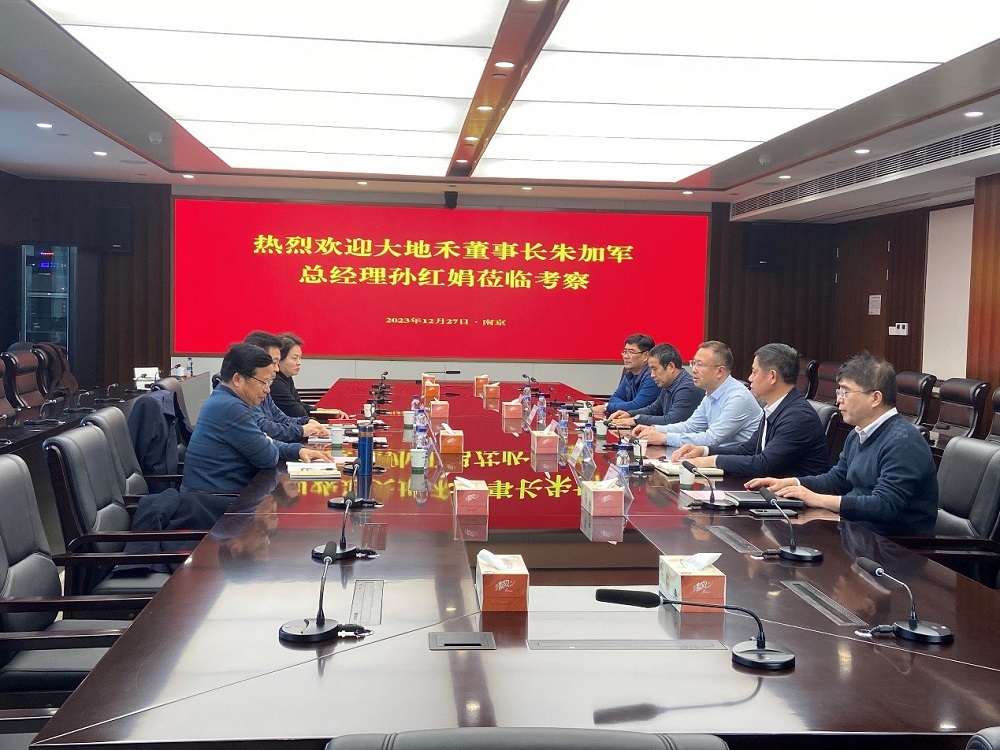 12月27日,江蘇大地禾集團董事長朱加軍到蘇墾農發考察交流,蘇墾農發、大華種業、蘇墾農服相關領導及總部有關部室參加接待座談。