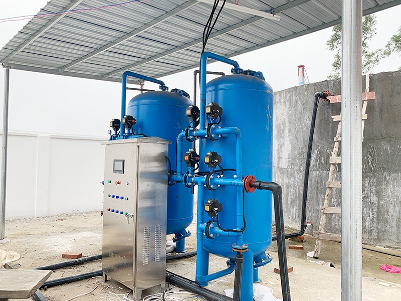 本方案主要針對(duì)原水為河水、地下水、自來(lái)水等地區(qū),水源通常比較渾濁,水面漂浮臟東西、樹(shù)葉、水藻等,尤其在暴雨季節(jié),水中泥沙量增加,雜質(zhì)多等情況。因此利用填料來(lái)降低水中 濁度,截留除去水中懸浮物、有機(jī)物膠質(zhì)顆粒,是給水凈化的重要水處理設(shè)備??到蛩幚頌楦鶕?jù)實(shí)際用途情況制定以下解決方案。用水處理量每小時(shí)約5-8噸。