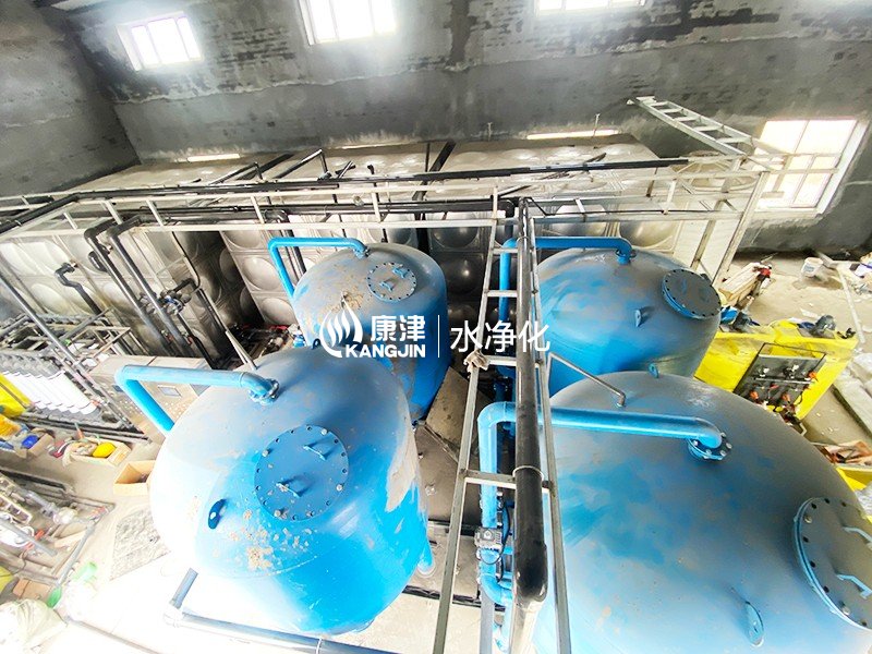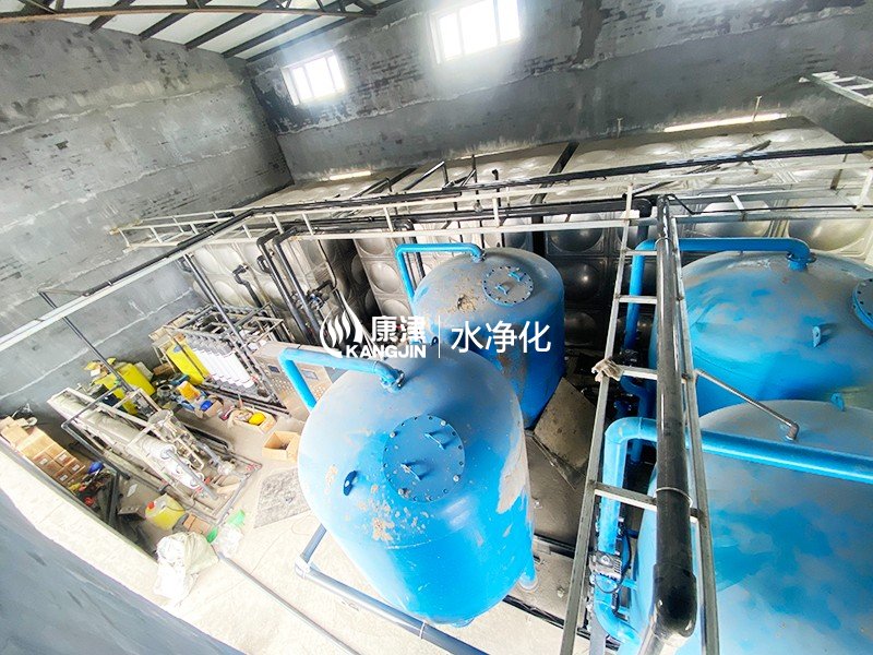 工藝流程:自來(lái)水-原水箱-石英砂過(guò)濾器-二級(jí)石英砂過(guò)濾器-加藥設(shè)備-超濾設(shè)備-反滲透設(shè)備-凈水箱