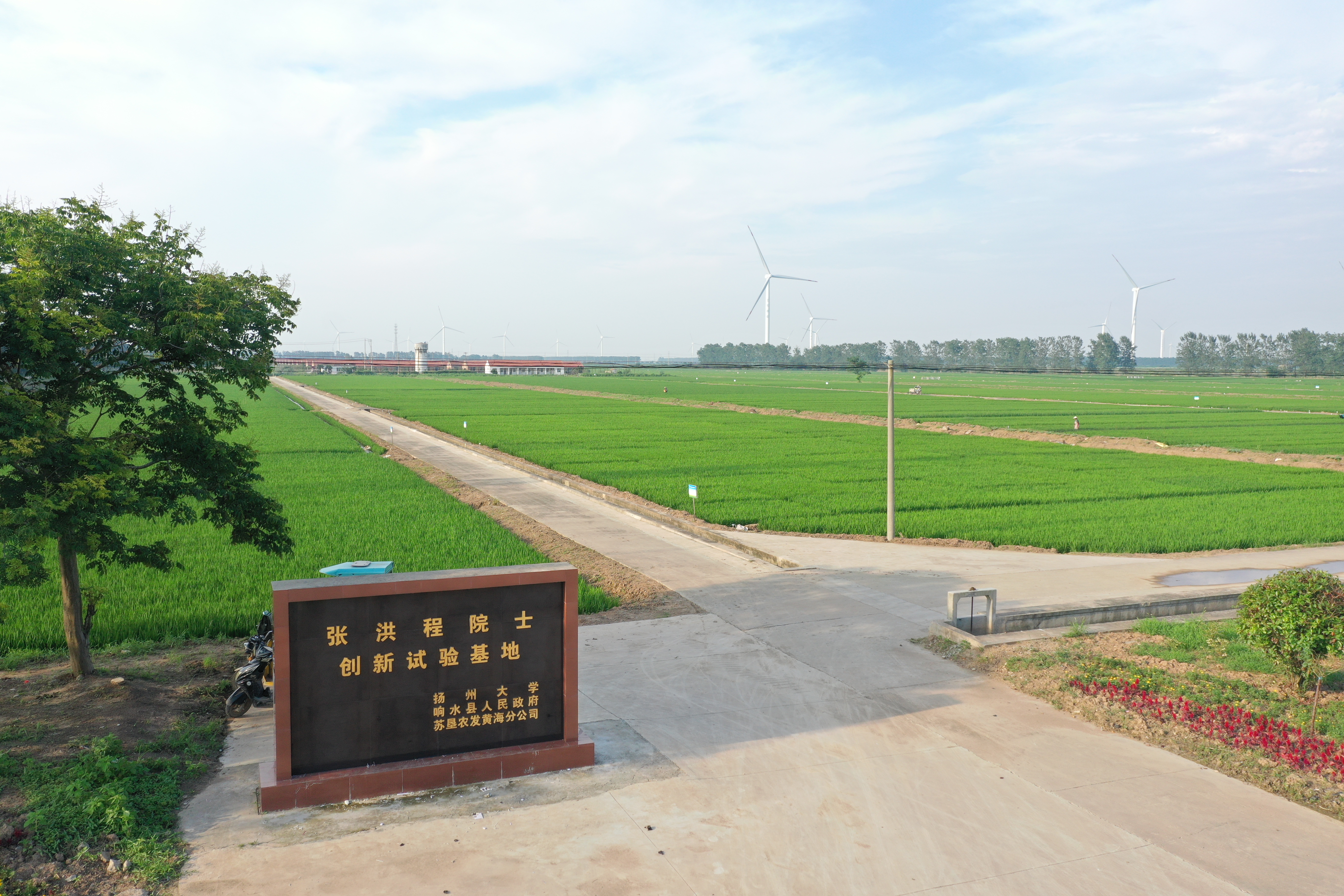 張洪程院士創(chuàng)新試驗(yàn)基地位于黃海分公司第五生產(chǎn)區(qū),占地面積500畝,于2016年10月正式掛牌成立。基地以張洪程院士團(tuán)隊(duì)為核心,配有專(zhuān)職農(nóng)業(yè)技術(shù)人員,基礎(chǔ)設(shè)施完善。該試驗(yàn)基地集響水縣人民政府的政策優(yōu)勢(shì)、黃海分公司的資源優(yōu)勢(shì)和揚(yáng)州大學(xué)的科研優(yōu)勢(shì)于一體,以比學(xué)趕超稻米產(chǎn)業(yè)發(fā)展先進(jìn)國(guó)家及國(guó)內(nèi)先進(jìn)地區(qū),推進(jìn)“蘇米”產(chǎn)業(yè)走在全國(guó)最前列為目標(biāo),強(qiáng)強(qiáng)聯(lián)合,促進(jìn)良種良法配套、農(nóng)機(jī)農(nóng)藝結(jié)合,推動(dòng)水稻產(chǎn)業(yè)高質(zhì)量發(fā)展。